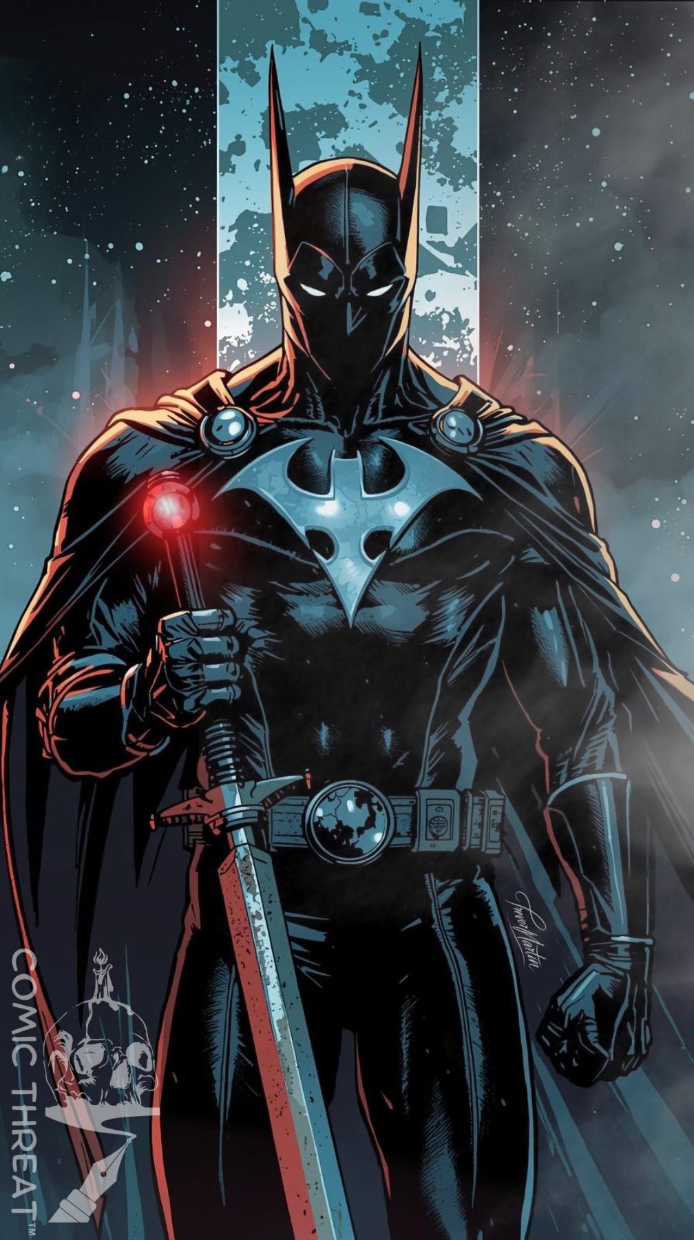 The clash was brutal, iron against sorcery, faith against corruption. The Grand Master fell screaming, his holy crown split in two. As the fire spread, Bruce carved a sigil into the temple wall…a bat’s wings, spread wide across the cross.